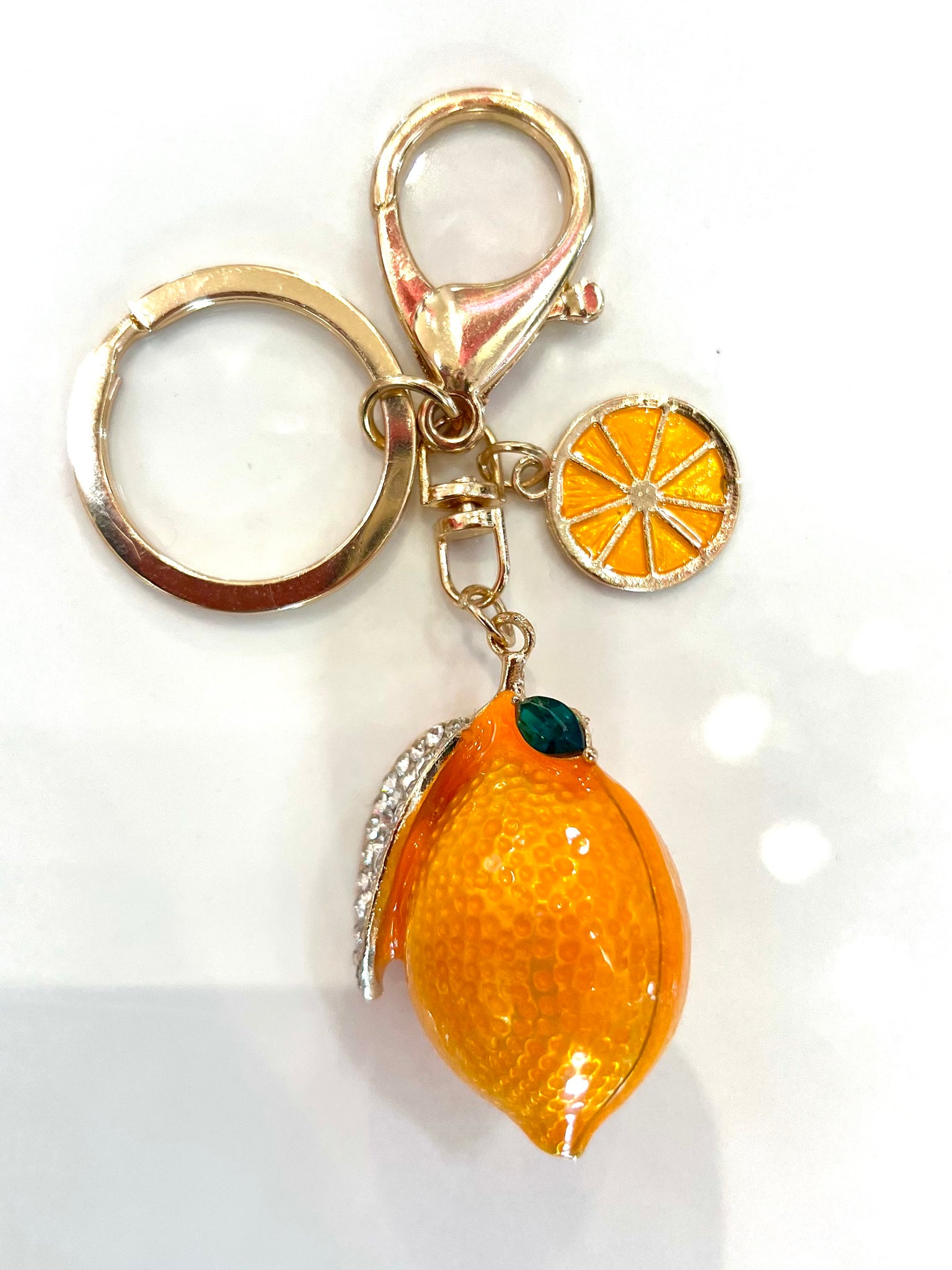 Elevate your handbag with the Citrus Purse Charm. Perfect for vacation or summertime fun, this vibrant charm adds a playful touch to any outfit. Enjoy a twist of citrus (and compliments) wherever you go!