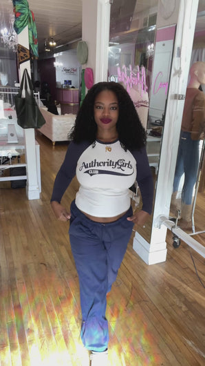 Get into this sporty AuthorityGirls Club navy color block contour top. Perfect for when you want to accentuate your curves while still maintaining a sporty look. pairs well with Navy bottoms!